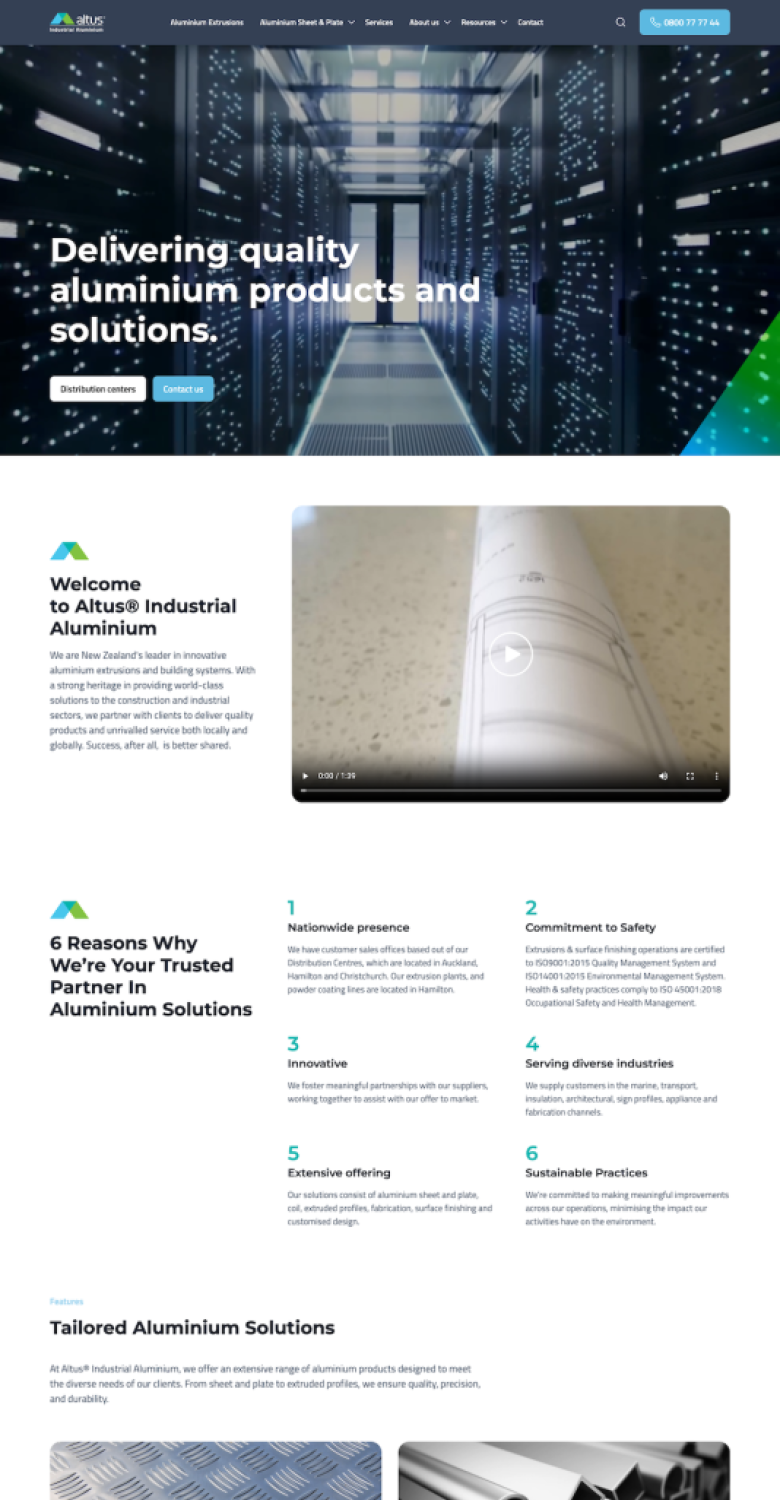Working with the team at Smart Digital and designer Luke McArthur we built this new corporate site for Altus Industrial Aluminium.