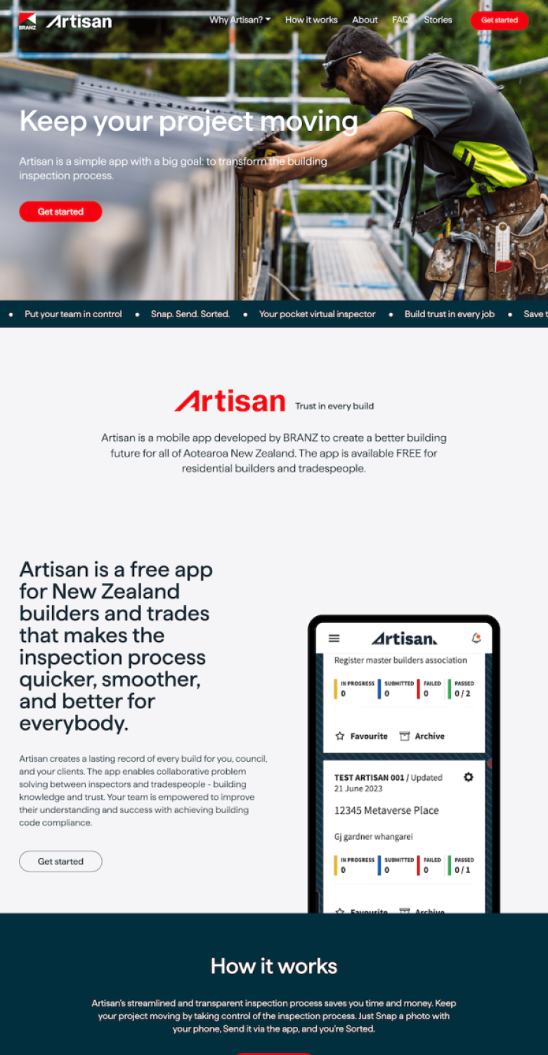 Working with the talented folks at True Creative & Design Agency, I redeveloped this site for the BRANZ Artisan app - a tool which helps builders and consent authorities to work together in a smarter way.