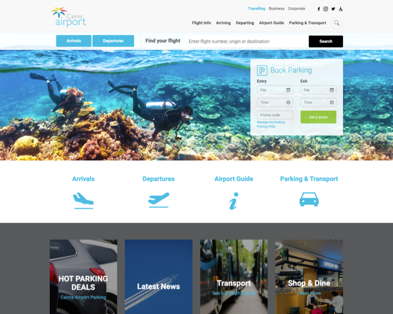 Working with Australasian web agency One Fat Sheep, I redeveloped the Cairns Airport website.