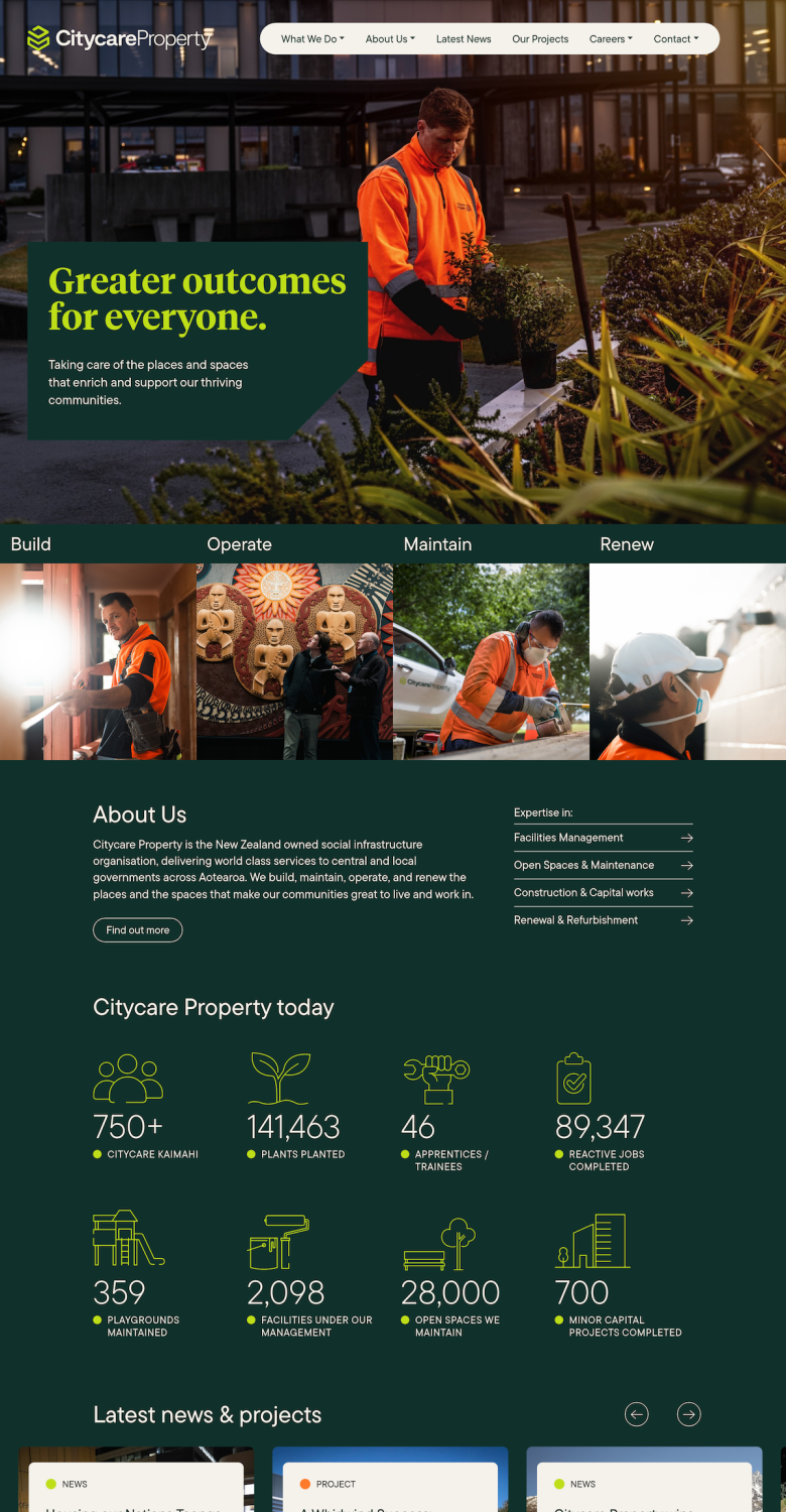For the initial redevelopment with user experience designer Graham Howe, I rebuilt the Citycare site to bring their stories to the fore, and give clients a snapshot of who the company is and what they do.