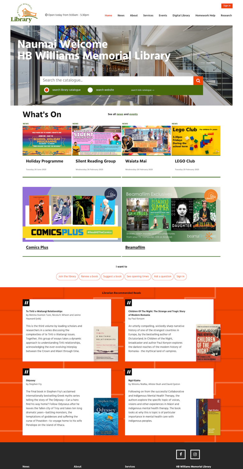 Working with UX guy Graham Howe, I developed this new website for Gisborne's Public Library based on the Governments Common Web Platform.