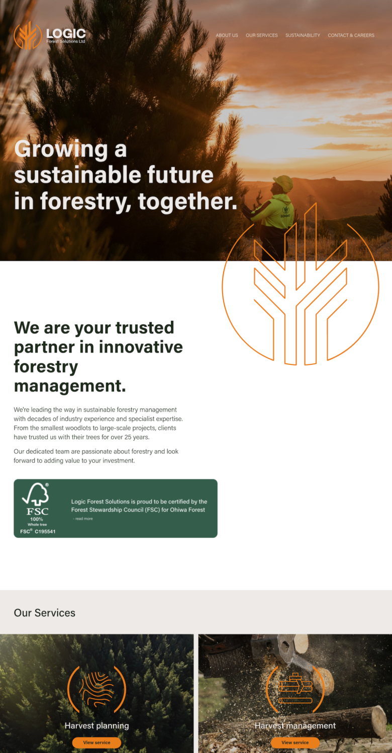I first built a site for Logic back in 2006! Over the years there have been a few updates, and the company has grown and changed. This new site, crafted by talented local designer Susanne Effmann, showcases Logic's broad range of forestry services and sets them up for the future in a rapidly changing industry.
