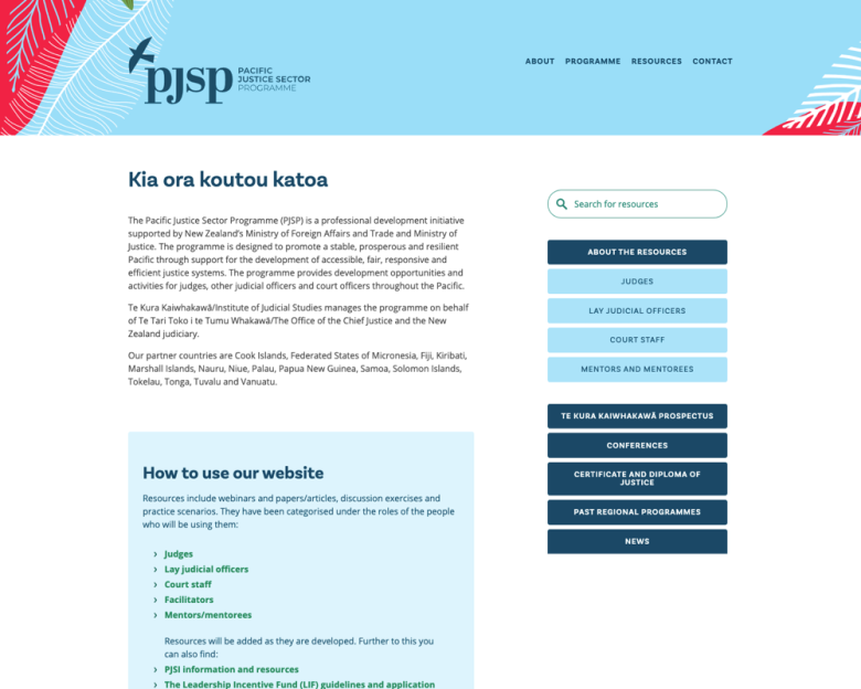 I worked with Te Kura Kaiwhakawā, PJSP, Ministry of Justice, Mark Creative and The Hive Creative to develop this transitional website.