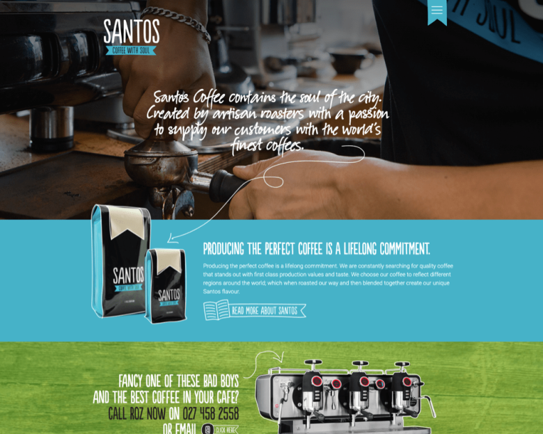 Santos Café in Newmarket is the perfect place to enjoy a true artisan roasting experience. This highly crafted website design by Intuit Creative brings the unique Santos flavour to life.