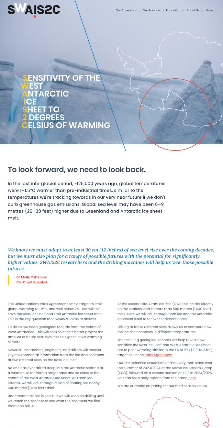 SWAIS2C aims to determine just how much the West Antarctic Ice Sheet melted during the last interglacial and other past times when climate was warmer than present. We gave this Antarctic project site a good freshen up and made it a lot easier to manage and maintain from the ice!