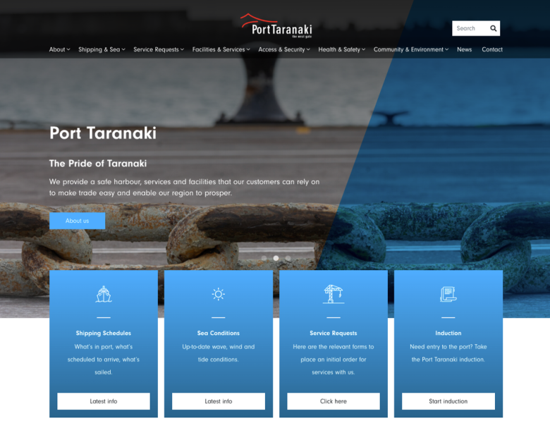 Working with Taranakai agency SmokeyLemon, I developed this new site for Port Taranaki - The West Gate.