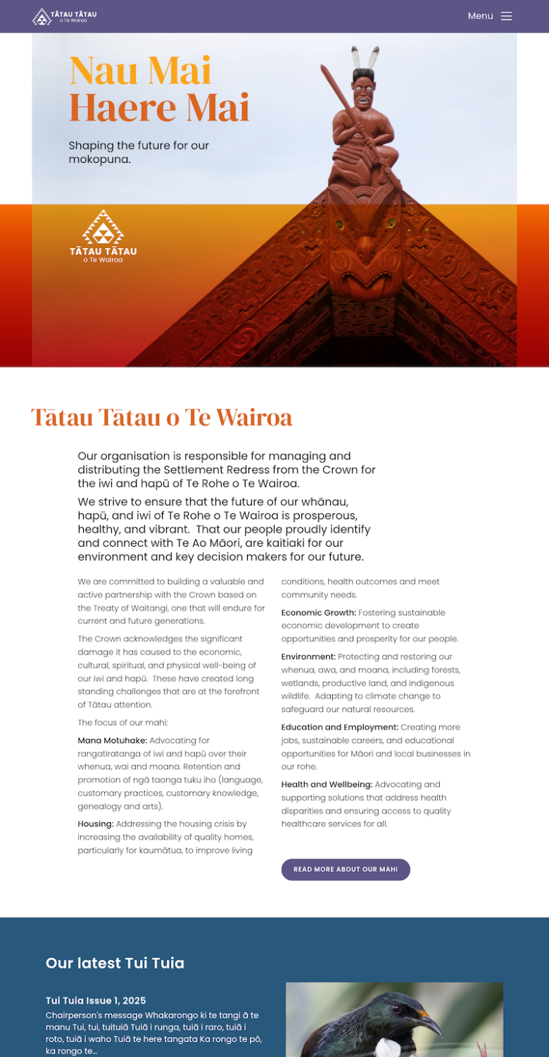 Working with Wellington design agency Wonderlab, I developed a new site and registration systems for Wairoa iwi organisation Tātau Tātau o Te Wairoa.