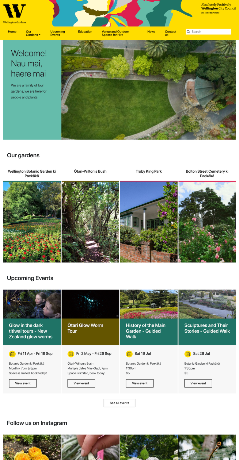 A garden of national and historic significance, Wellington Gardens wanted to revamp their site in the lead in to their 150 year celebrations. Working with Wellington creative experts Mark Creative, I build this new site to showcase all that the Gardens has to offer.